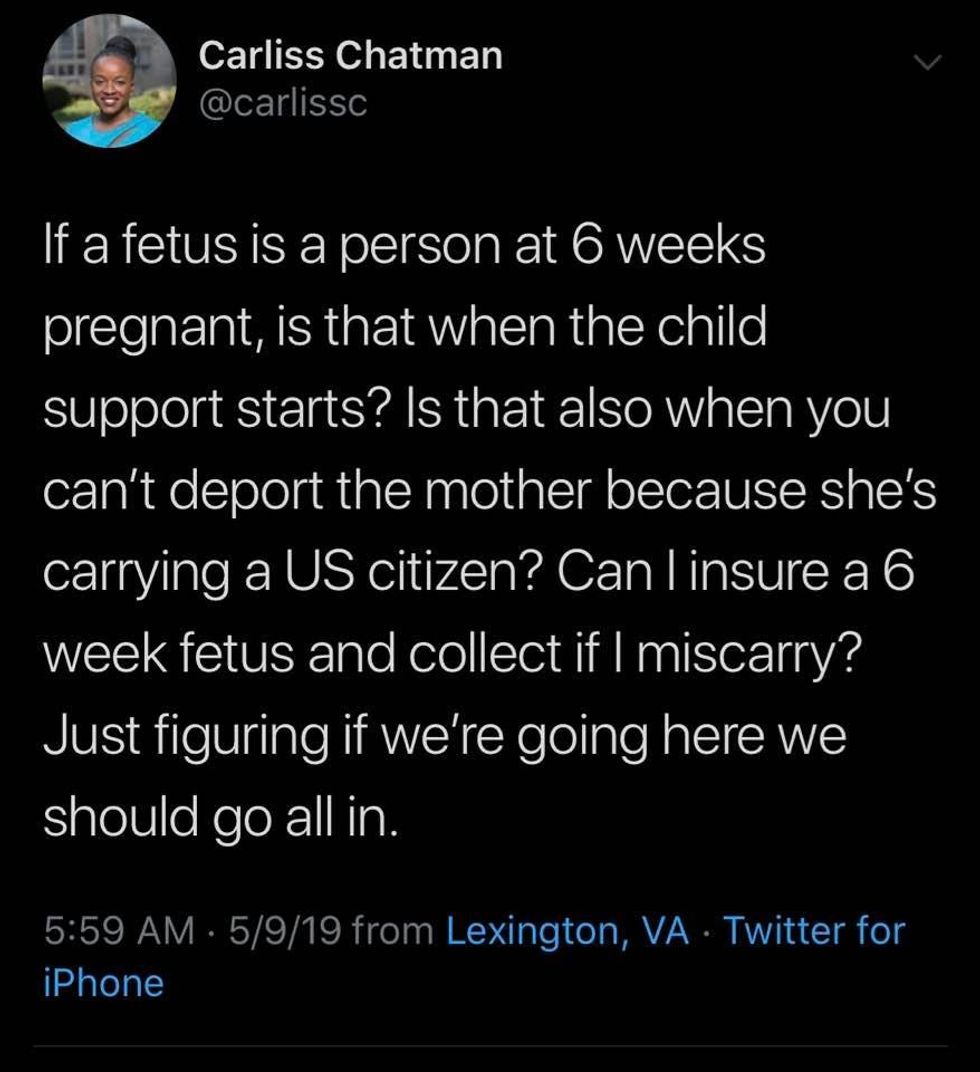I don't need to tell you that none of these are a reality. In fact, in the recently proposed Alabama abortion ban, Senator Linda Coleman-Madison proposed an amendment that would require Alabama to merely provide free prenatal and medical care for the mothers who would now be denied an abortion. Her proposal was overwhelmingly voted down.