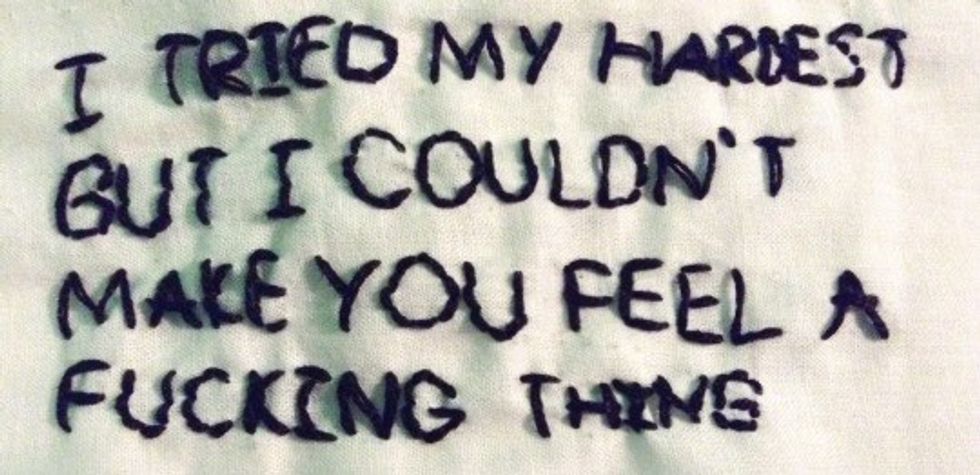 These graphics irritate me especially because terrible messages are displayed over glittering, dainty images of embroidery or water or appealing images - as if the beauty of an image or a craft is replicated in the beauty of the message. The message is not beautiful or worth holding onto. Your worth as a human being is not dependent on one person's view on you. A relationship that went wrong just wasn't meant to be, that's all. What happened with one person says nothing about your own value and beauty and everything you have to offer as a person. Giving your all to someone and ending up with a failed relationship says nothing about you, and should not make you feel hopeless or lost forever. You are more than one relationship, or one relationship that never even had a chance to begin. Pick yourself up and move on, because one person's perception of you is only altered by the course of a relationship, not the actual content of what makes you who you are.