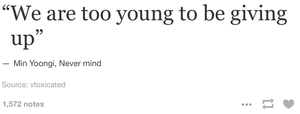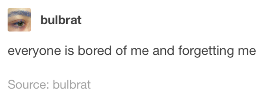 These thoughts had never crossed my mind when I first discovered Tumblr, in all honesty, and I was quite ignorant to the debilitating thoughts that plagued so much of my generation online. However, over-exposure to these thoughts and concerns eventually put them on my own mental map, and it took some time to understand these thoughts and also to get back in touch with how happy I had been with positive thoughts as my former self. During a time, at the beginning of my high school career, when I should have been building confidence and discovering more about my own identity, I was greeted with doubts that had never previously existed, as a result of my exposure to Tumblr. So while the problem may not lie with Tumblr itself, there is a problem with the media that a vast portion of its membership chooses to post. It's time for this to end.