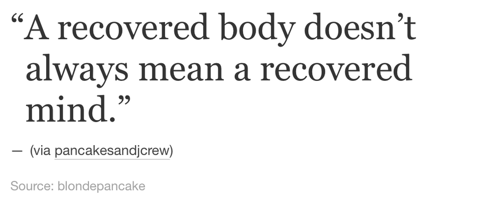 Depression is not a lifestyle to be attained –- it’s a daily, energy-draining struggle for those who are forced to cope with it. Self-harm is not a tragically beautiful expression of being hopelessly trapped in a fragile, poetic life. Struggling with your body image, personal confidence, and self-worth should not be a way to invite others to make you feel better, and certainly will not make you feel better about yourself. While these issues are perfectly okay to face in one’s life, and those who encounter and even attempt to overcome them should be applauded for their courage, I think it’s important to make it clear that these are not aspects of a fragile, perfect lifestyle of beautiful tears. Do not force things like mental illness –- depression, anxiety, eating disorders, or otherwise –- on yourself. Mental illness and personal struggle should not be considered a goal to be attained; to treat them as to such is to make a mockery of people who actually are burdened with these struggles and are doing their best to overcome them.