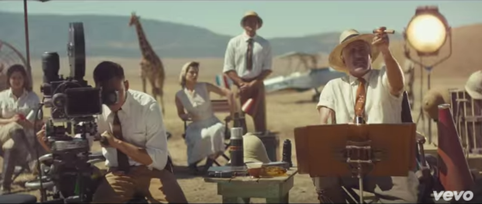 The video follows a male actor and a female actress of Hollywood during colonial times who fall in love as they film a movie in Africa. There is gorgeous garb and undoubtedly beautiful picturesque scenes of Africa. It all sounds very romantic.