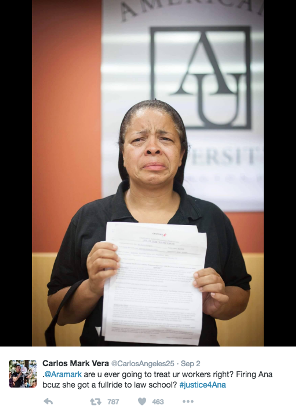 Ana’s story sparked outrage on-campus and led to sit-ins at the Aramark office in an attempt to hold the managerial staff accountable for the unjust treatment of workers -- not only limited to Ana’s experience. The Eagle -- an on-campus newspaper -- has reported on many worker rights issues brought forth by Justice for AU Workers Coalition and AU Student Worker Alliance.