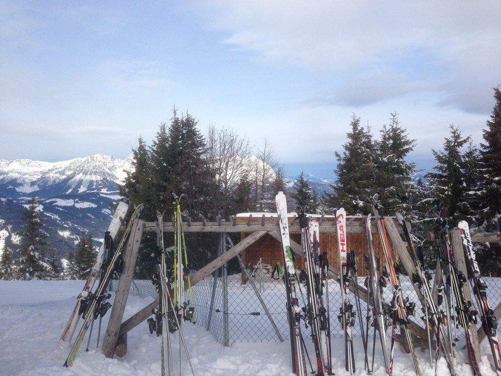 But that’s just getting started. The next step is to get a locker, put on 152 layers of clothes (it may be more than that actually), put on your boots and then haul your skis outside. Actually, you have to haul them everywhere you go. By the end of the day, those two plastic sticks with metal are like telephone poles, and it feels like everywhere you need to walk is 10 miles away. Thank goodness the skiing itself makes all of the effort worth it.