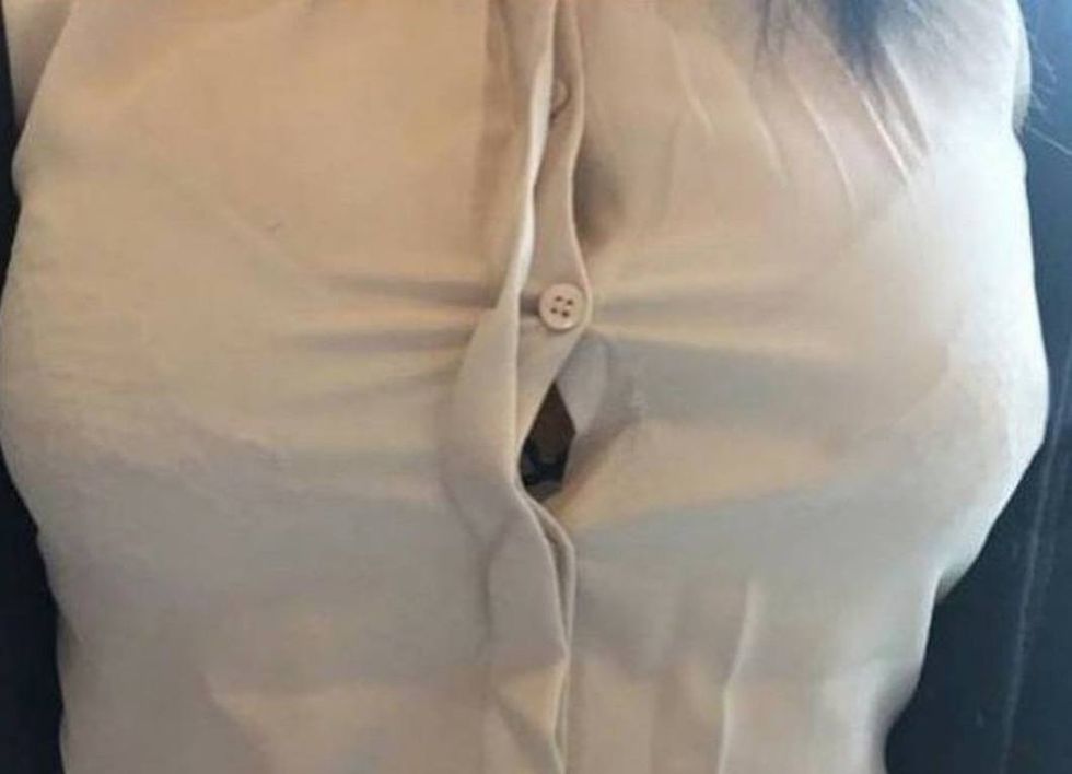 If we don’t choose wisely, the buttons gape open and you basically are giving a small peep show. Or if we stretch our arms or back... see exhibit A above. Might as well wear a t-shirt under it and wear it open.