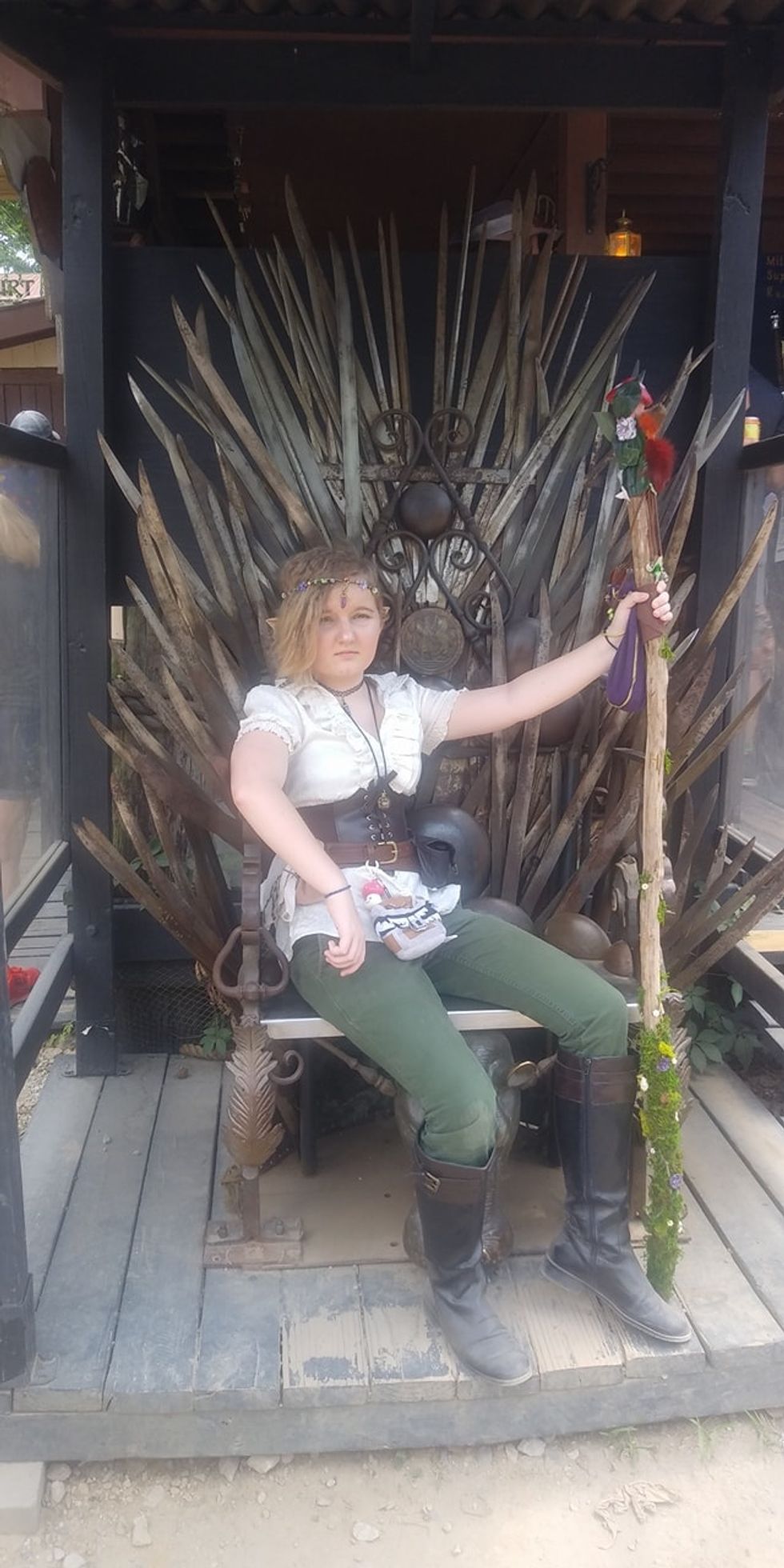 Can you believe that I made the staff and headpiece? I made a few other smaller pieces too. I took ideas like any good artist and twisted them to make my own. I also went to craft stores like Michaels and Hobby Lobby for supplies and ideas. The craft section in walmart is not as bad as many think either. I got most of the supplies from there to save on money. It just depends on what you can use. That is why I say to price out everything during your planning phase to find the best deals.