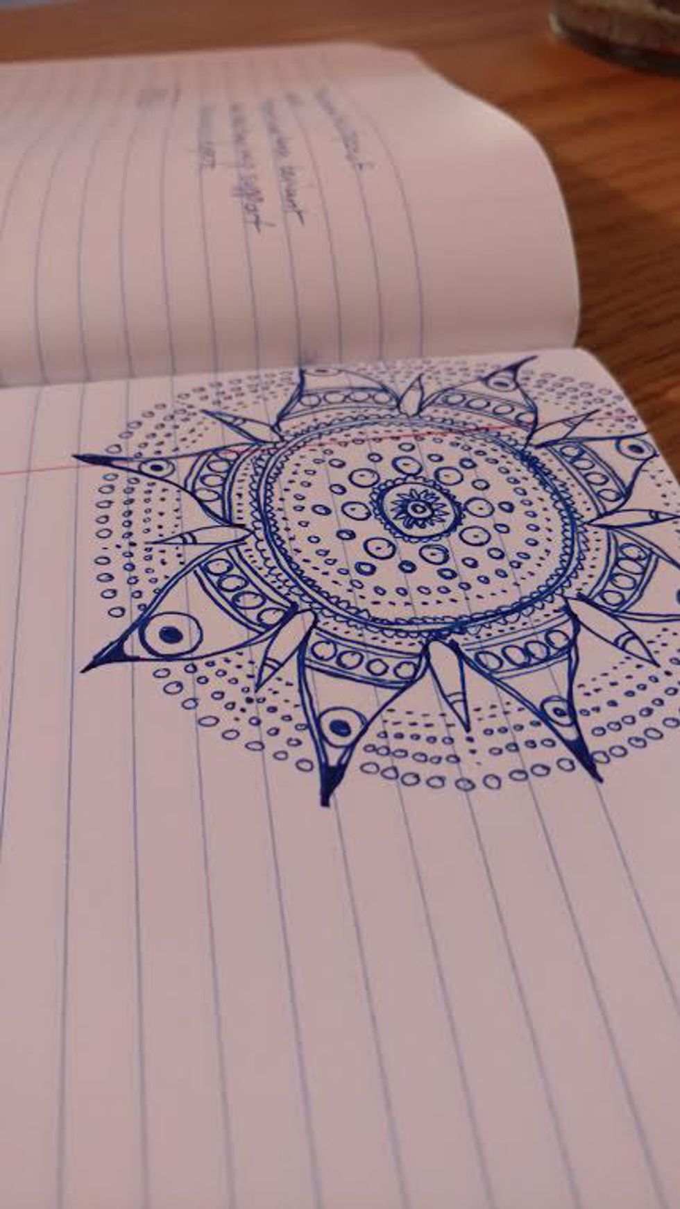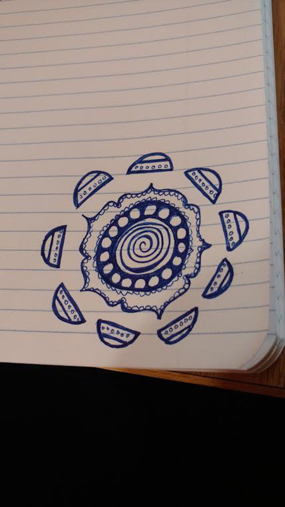 **This is more advanced** Mandalas are beautiful, but if you don't draw very much then you probably should not start with these. However, if you are like me, many times basic doodling is not enough. Simple shapes get boring, my eyes start to get heavy, my brain fizzles out, and there I go, completely out of it. Drawing mandalas definitely stimulates my brain and gets me thinking hard. However, with these you have to be careful. Not only could they take up too much focus, they also look like you aren't paying any attention to the class. Because of this, when doodling mandalas in class, remember to participate often, letting the teacher know you are paying just as much attention as everyone else (and showing off your multi-tasking skills!)