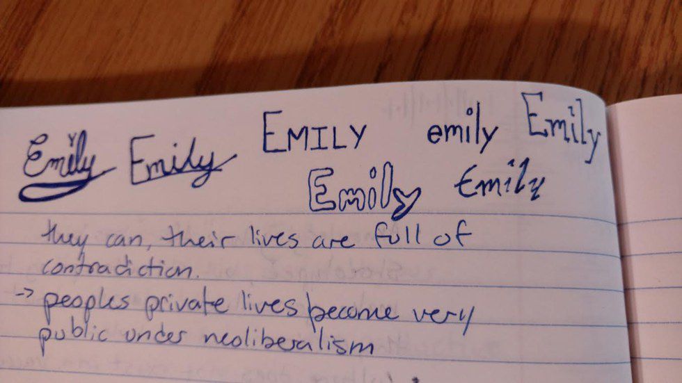 I fall into this trap just as much as the next person. I know, it's a little embarrassing but I'm willing to put my ego on the line to say DON'T DO IT. Don't doodle your name, don't doodle words at all, they distract from hearing the words floating around the classroom. The only thing worse than doodling your name is doodling someone else's (and you know what I mean.)