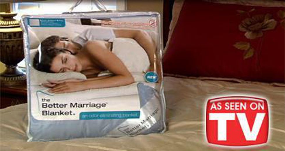 This one made me laugh. It is a blanket that is supposed to absorb the stench from your spouses flatulence during the night when they are sleeping. I guess that could make a marriage better...