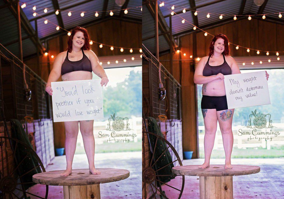 "My name is Ariel. My whole life I've been struggling with my weight by people telling me I'm fat and also by people saying I'm not pretty enough because of being a little overweight I lost my confidence my personality by people bringing me down by doing this photo shoot has showed me that it's okay to be different that it's okay to be a little bit chunky and still look beautiful and it's has made me gain some confidence back."