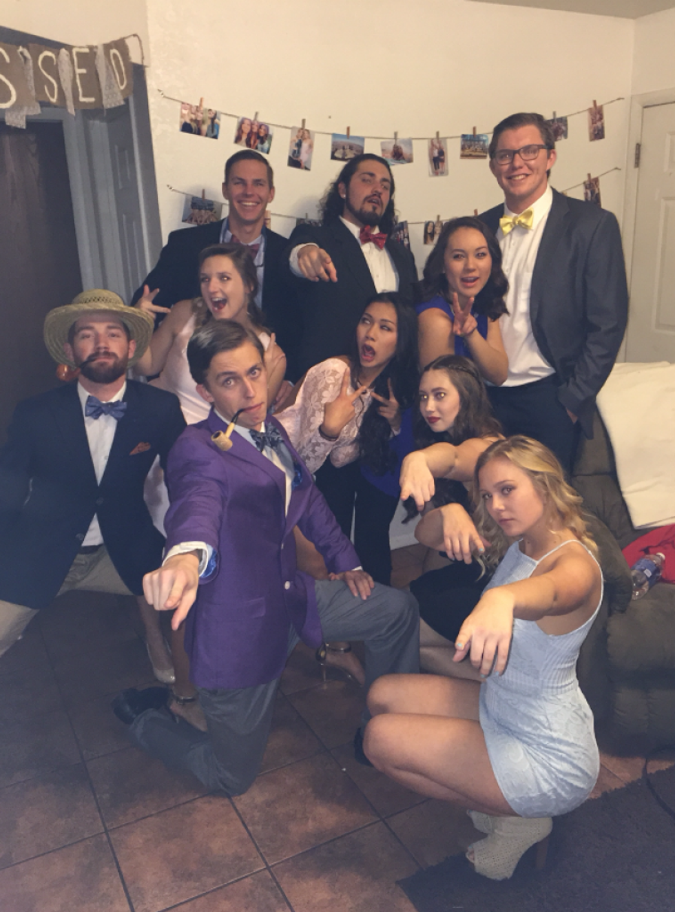 Formal: Formal pictures last at most for 15 minutes before you start to not care anymore. You wake up the next day and realize your camera roll has only a handful of pictures from the night before, half of which are blurry. You find the most appropriate one to send to your mom texting, "Had a great time at formal!" and then proceed to roll over and go back to bed.