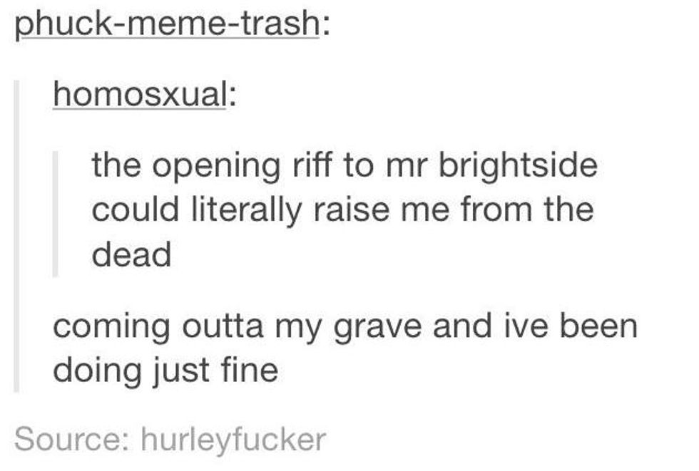 But really, can you remember a time you listened to "Mr. Brightside" and didn't scream/sing the lyrics?