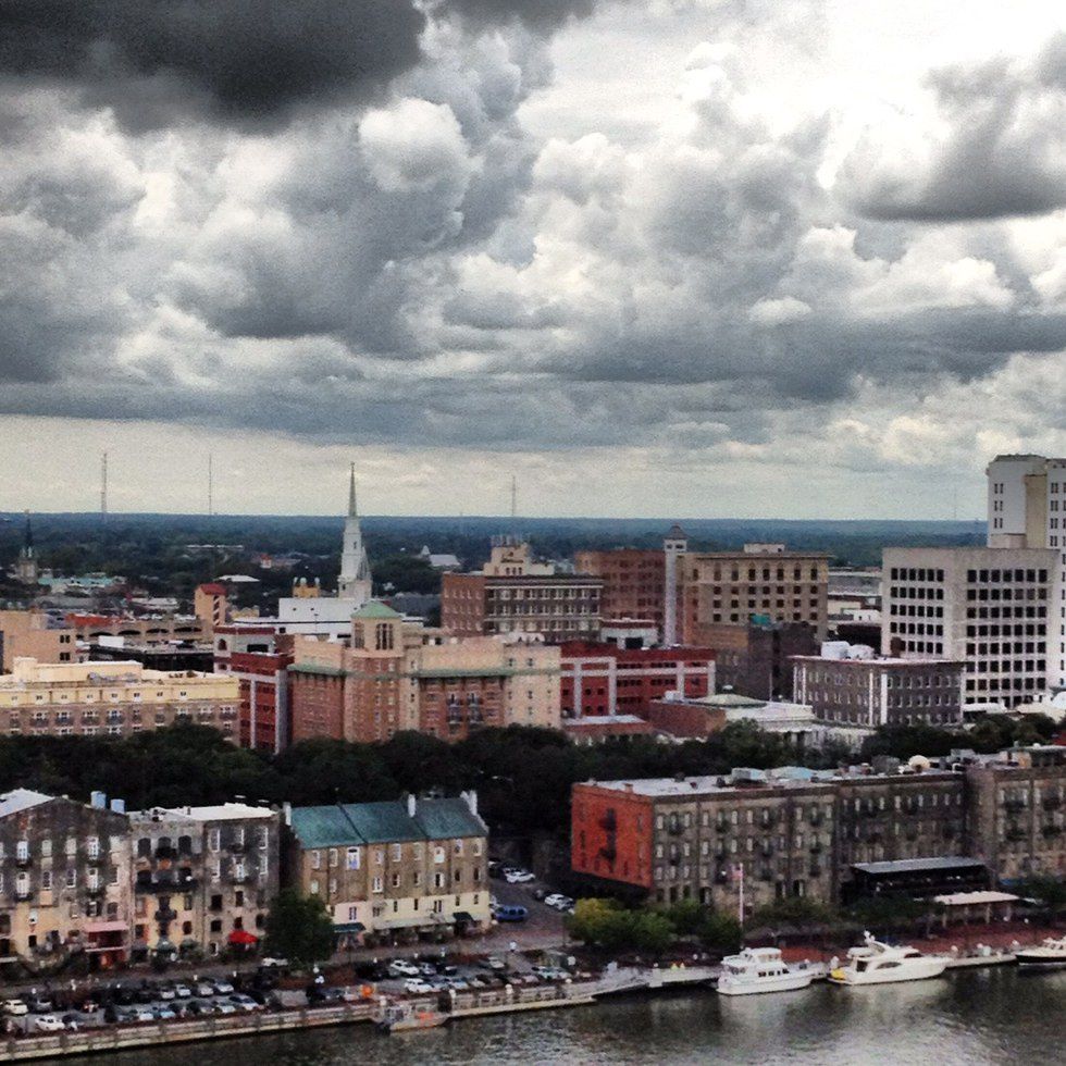 11 An aerial view as the rain clouds settle over Savannah, GA.