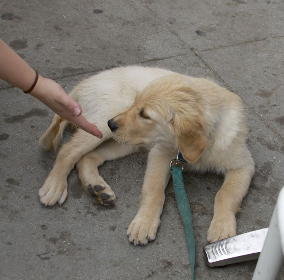 This is VITAL. Step three is the making or breaking point of human-puppy relationships going well. This gives the puppy an opportunity to sniff you out, check to see if you're safe.