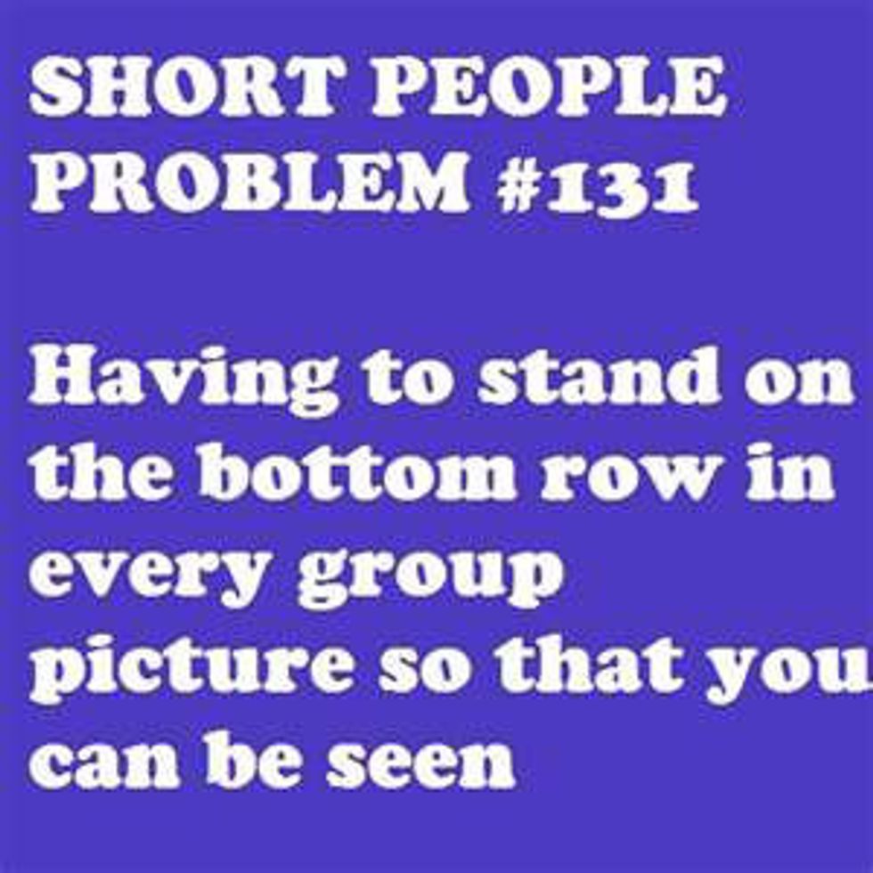 Climbing things, reaching for objects, having different kinds of tall apparatuses around your house to help you get a little bit taller, or just getting on top of a chair or desk in order to reach that stupid item that someone left on your top shelf. Or having people tell you you're so cute because you're ridiculously short. Yeah, I don't think so, a**hole. If you've heard this or done this, then you clearly know what it feels like to be the short one. Sometimes being short isn't the best thing in the world -- but other times, it's just right.
