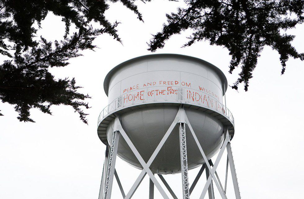 When the activist group "Indians of All Tribes" occupied Alcatraz in 1968, they too left graffiti behind. Their words-- painted and scraped onto the buildings of the island's abandoned prison, visually declared their reclamation of native land. Their occupation would end in 1971 with the IAT's removal by federal marshals. But the wind-whipped island still bears memories of the group's nineteen-months-long residency there. Perhaps most noteworthy is the bold red letters reading “Peace and Freedom. Welcome. Home of the Free Indian Land.” traced on the prison's newly restored water tower.