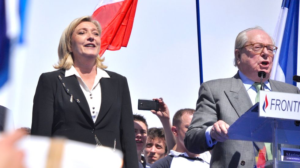At the start of May, a massive group of protesters in France held large protests against one of the two presidential candidates Marine Le Pen, or in short the female Donald Trump. Although I would argue that she is even more racist and anti-semitic than Donald, a feat not so easy to accomplish. She took over the "National Front" party from her father, Jean-Marie Le Pen in 2011. To understand Marine Le Pen, we first must learn about her father. Jean-Marie Le Pen (below, right) started the National Front party in 1972. He has been known to make very controversial statements regarding immigration and anti-Semitism.