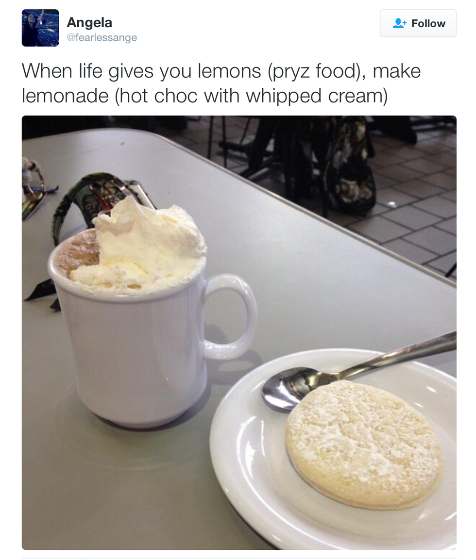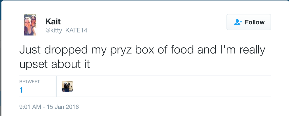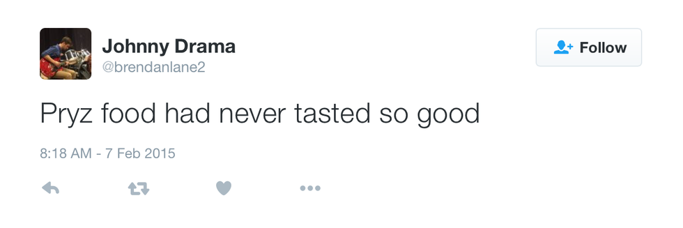 1. When you come back from a break and realize that you have to go back to eating pryz food *shudder*.