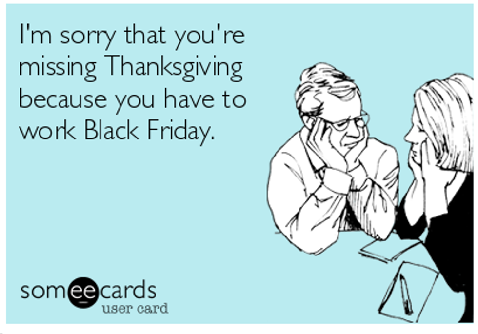 Also, the malls are almost ALWAYS open on holidays. So, when you're shopping on Thanksgiving, and we have to cut our dinners/family time short, please don't ask why we're working.