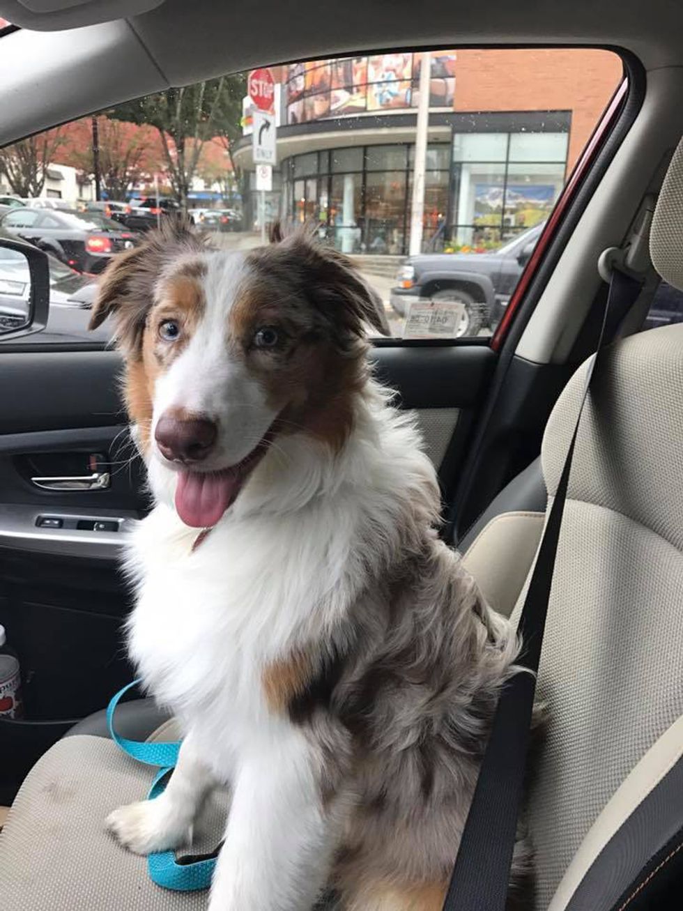 Another way for a psychiatric service dog to calm an anxious handler is by sitting in the handler's lap or across the chest. Many people just think we like to sit down in the middle of a shopping mall to have our dog cuddle in our lap. However, with as cute as they may look, they are actually doing a very important task that is used by many psychiatric service dog handlers. This is called DPT, deep pressure therapy, causing serotonin and dopamine to be released in the handler's brain. The pressure is also calming because it helps lower heart rate and blood pressure, both of which rise during a panic attack or anxiety spike.
