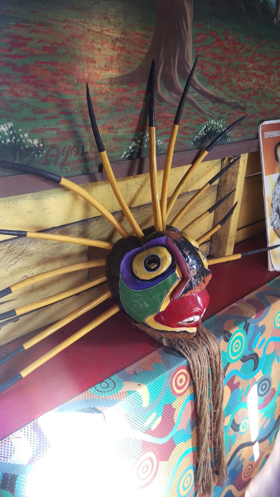 Many caretas are made of coconuts, in which the cortex of the coconut has been removed allowing the artists to create human like faces. The eyes and mouth are carved out of the coconut, while bamboo is added to look like teeth.