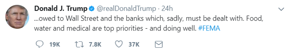 Trump is making it clear enough that while he has been making some attempts to help the 3.4 million US citizens who have suffered from Maria’s hit on Puerto Rico, his priorities lie elsewhere--such as in harassing the NFL.