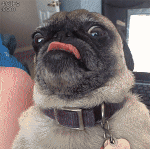 Pugs have really round eyes that always pop out and a face full of wrinkles. If you don't think that is cute then are you okay? Just look at that tongue.
