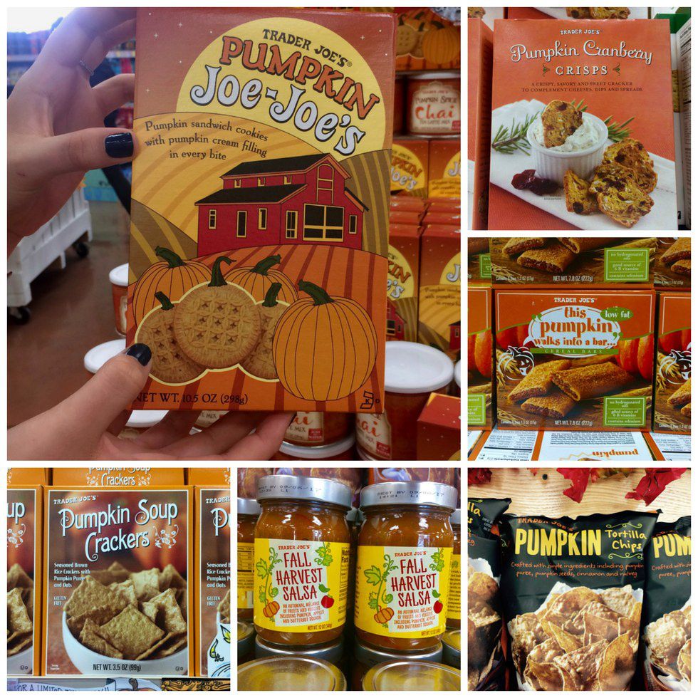 Don't worry- there is plenty of pumpkin snacks to get you through the day too. Some of the best choices are: Pumpkin Joe-Joe's, Pumpkin Soup Crackers, Pumpkin Soup, Fall Harvest Salsa, Pumpkin Tortilla Chips, Pumpkin Cereal Bars, and Pumpkin Cranberry Crips.
