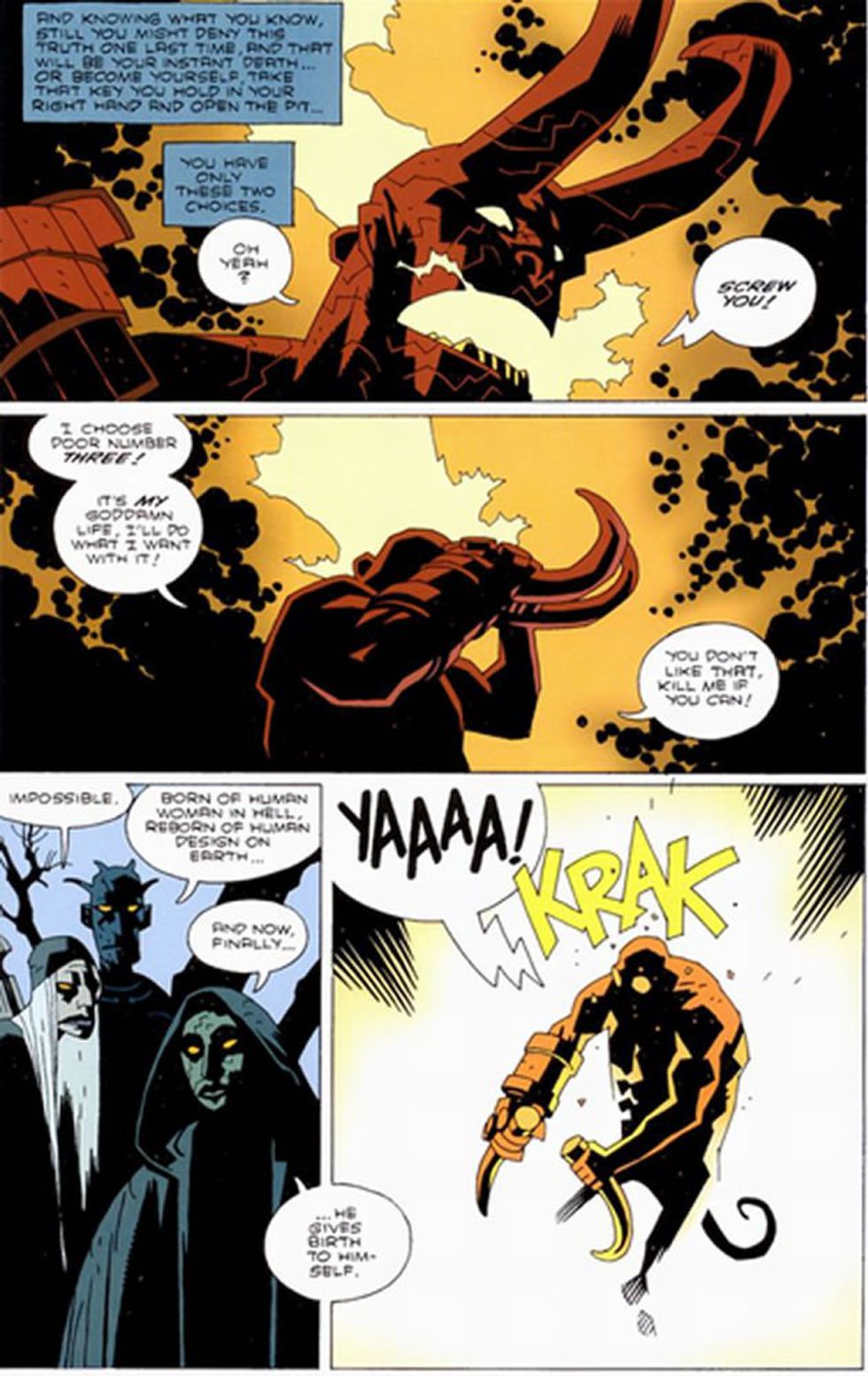The black and white, action filled panels were hypnotic and alluring to me. It looked different than anything I had read before. The first time I read that story, I was unsure of what he was supposed to be to the plot. Then, the story began to unfold and I realized I had in my possession a story about identity and individuality, something I had been familiar with other stories like Hellboy.