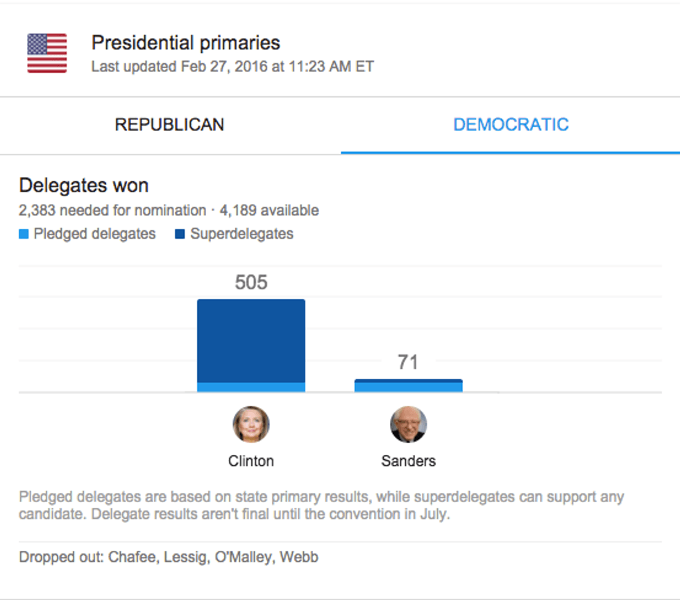So this leads everyone to ask, usually every four years, what is a superdelegate? According to CBS News: “unlike the rest of the delegates -- who are pledged to certain candidates based on the outcomes of their state's primaries or caucuses -- superdelegates are unbound, meaning they can support any candidate they choose. They can also switch their support at any time, right up until the actual nomination at the convention.” These delegates make up 15% of the overall delegates needed to gain the democratic nomination
