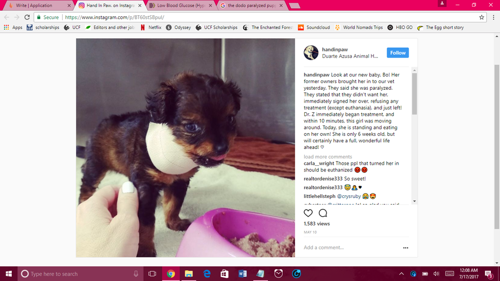 A puppy whose owner thought she was paralyzed was brought into a vet's office, but instead of attempting to fix problems or asking for information on how to take care of a puppy with such a medical condition, the owner simply abandoned the poor pup with instructions for the puppy to be put down. The owner did not want to be held responsible financially for any problems and opted for the puppy to be euthanized, even though it was so young. However, the veterinarian could not bear to put the puppy down as instructed and decided to run some diagnostics.