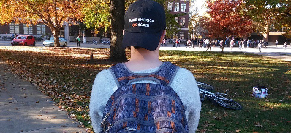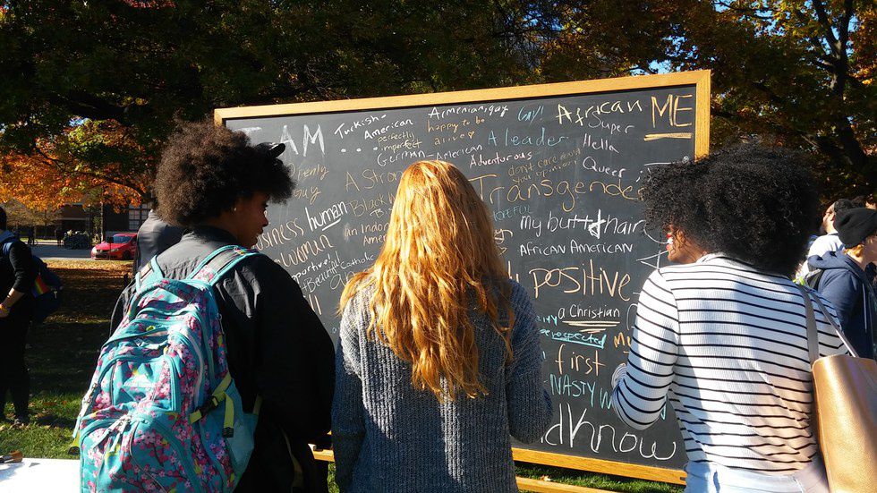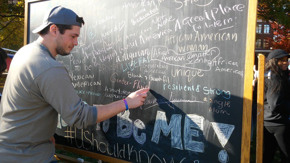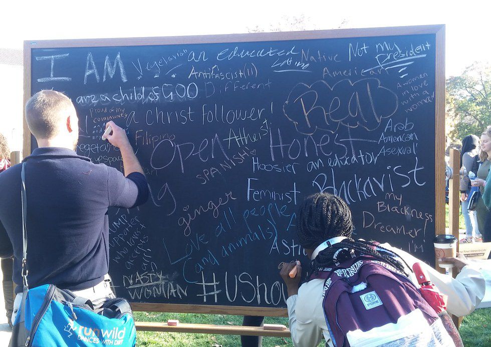 "I'm here because I think it's a good cause and I think there's been a lack of listening to each other. It's a good opportunity for people from all walks of life to come up and make it known that we're a diverse campus no matter left/right, conservative/liberal. You're still a Purdue student and we're all in this together. I think it's time now, and I wrote this on the board, for us to stop talking and start listening to each other more. We saw the political discourse through this election, and there wasn't a lot of discussion about actual issues. Now is the time to actually listen and acknowledge that what's done is done and we need to move forward, and make the best of what the situation is and understand each other a little better.