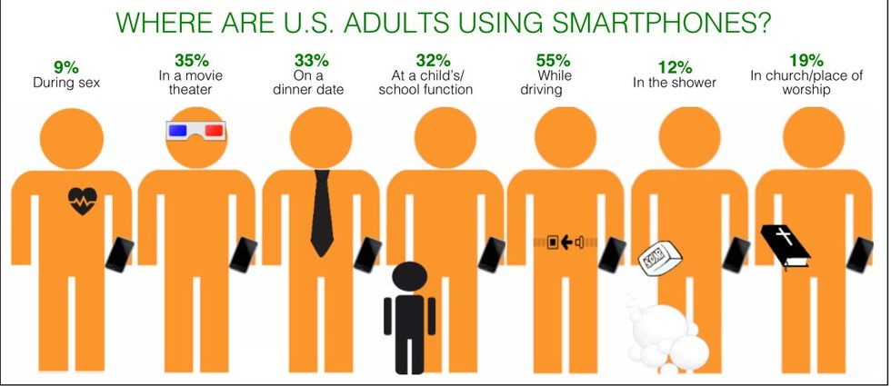 Over half of those surveyed admitted to using their device while driving, and 33 percent plead guilty to using them on a dinner date.