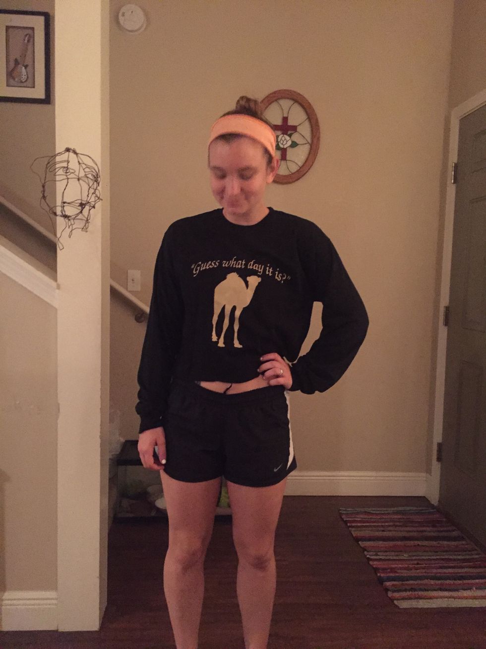 I recently partook in some foolishness when I decided to try on all of my shirts at the same time! I laid them all out in my living room and organized them from smallest to largest. After giving some serious thought to which kinds of tops should be included in this experiment, I decided upon all my t-shirts (long and short sleeved) plus all my tank tops. The total came out to 59 shirts. That number seemed daunting at first, but my inner child reminded me that I was not one to back down from a challenge.