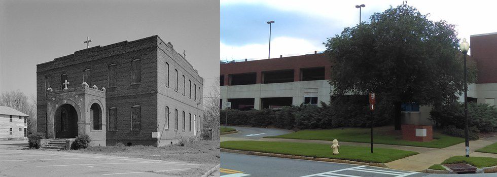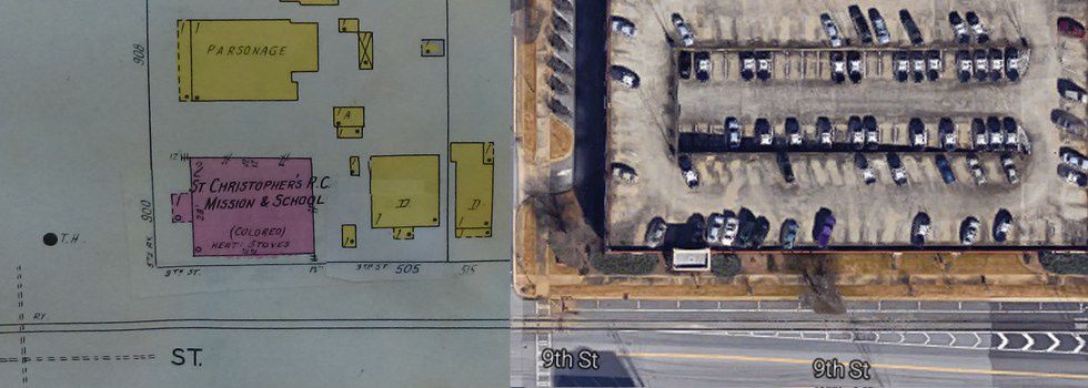 Documented by HABS in the 90's, with the help of local historian John S. Lupold, the former St. Christopher’s Normal and Industrial Parish School was built in 1916. The building was constructed in the Romanesque Revival style and served the black community as a private church-affiliated school until 1951. Important individuals involved in the creation of the school, as noted on the cornerstone that still stands, are Episcopal Bishop C. Kinlock Nelson, of Atlanta, and local black rector J. Stewart Braithwaite. In later years, the property was bought by the First African Baptist Church across the street and converted into a child care center. The lot where the school used to stand is now a parking garage for the Columbus Police Department. A special trace from St. Christopher’s Normal and Industrial Parish School that can still be seen to this day is the cornerstone that was laid during the construction of the building. The west side of the cornerstone reads: