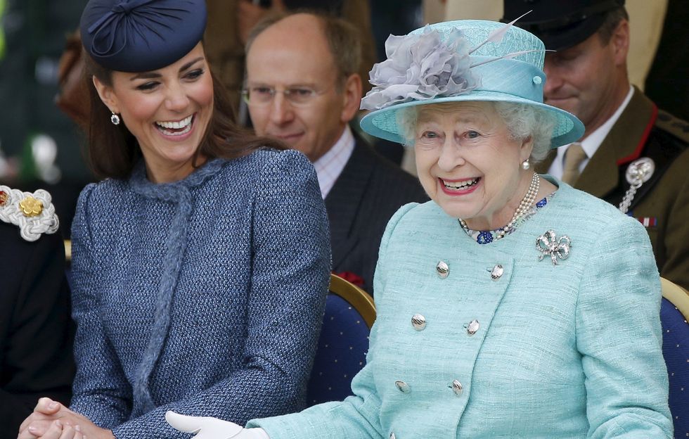 Queen Elizabeth II with her great grandchildren and a couple of her grandchildren.