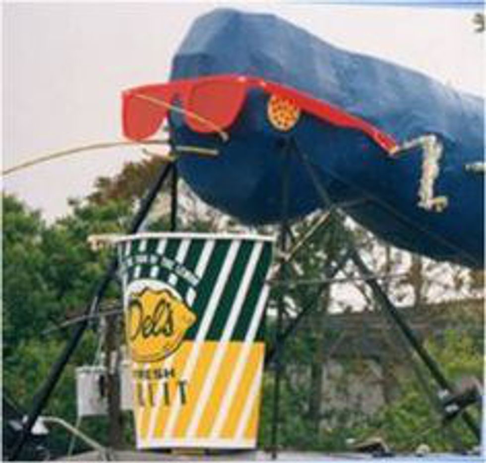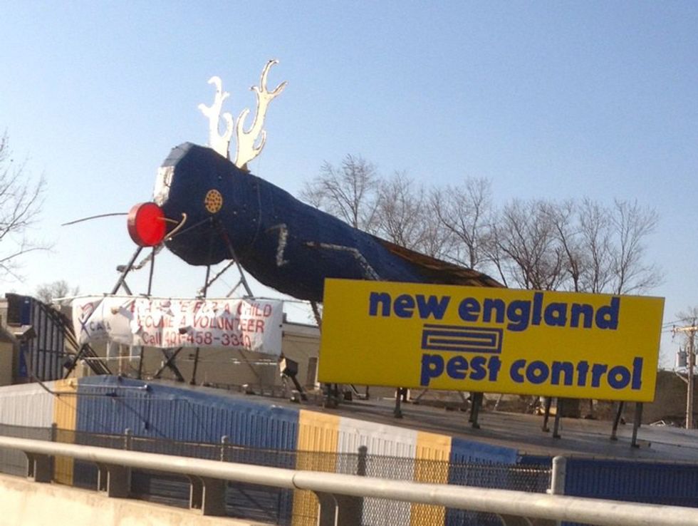 A landmark. That's what it is. For Rhode Islanders, the Big Blue Bug is a staple of the state, and a welcome site to those traveling I-95 through Providence. Originally New England Pest Control, the extermination company changed their name to Big Blue Bug Solutions in 2012 due to the overwhelming popularity of their prominent mascot. Located on top of a building that is nestled up to the side of the highway, the 9 foot tall and 58 foot long bug greets passerby's with antlers and red nose around the holidays, and sunglasses and a Del's lemonade in the summer. Some special occasions are awarded with rare changes in attire, like the tie he "wore" around the time of the name change. Given the name "Nibbles Woodaway" from a contest in 1990, this beloved icon is one that Rhode Islanders are proud of and love seeing as they drive by.