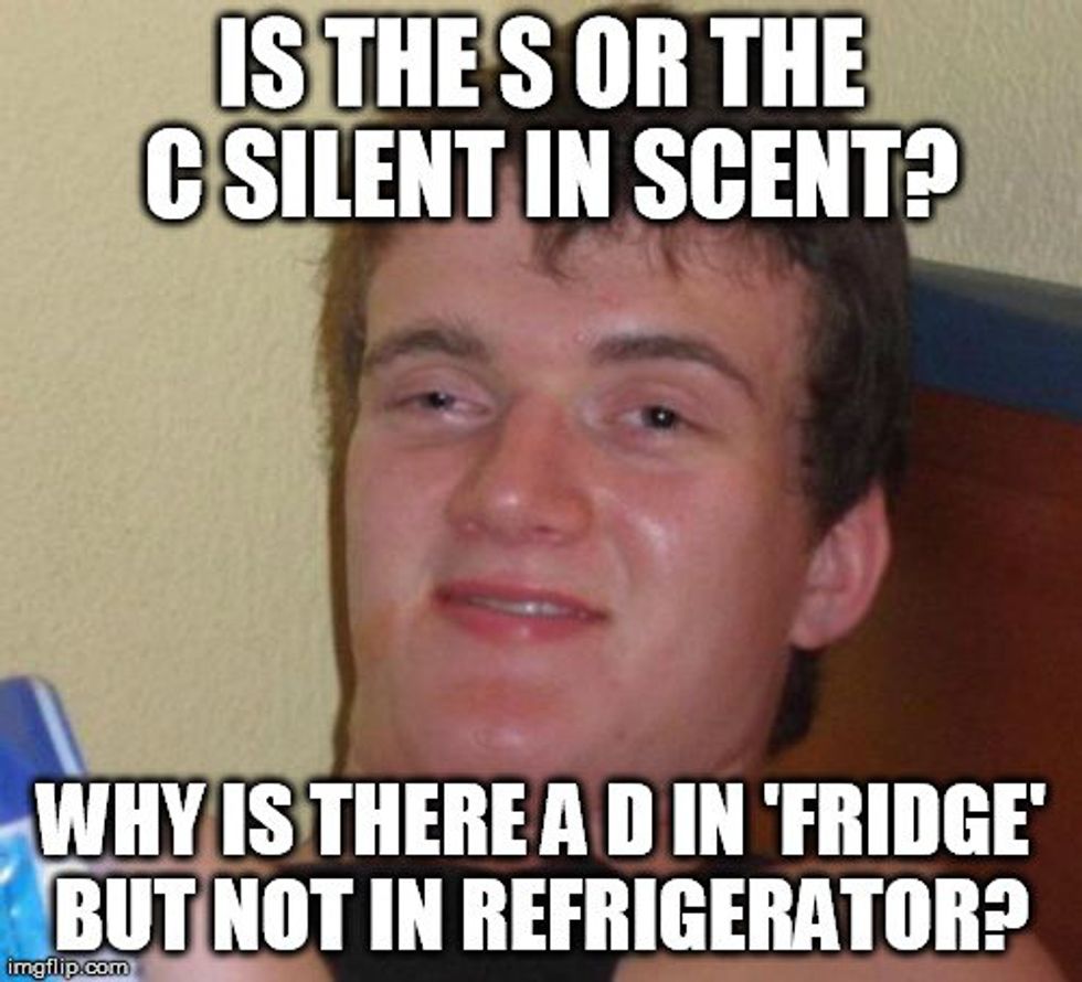 Pulled from a popular stoner meme on social media this question is actually very intriguing. The English language is a very weird thing. The Reddit community seems to be in firm belief that there isn’t a single letter that is completely silent, rather there is a fraction of each letter that is pronounced. For instance, 3/4 of the “s” is pronounced in combination of ¼ of the “c.”