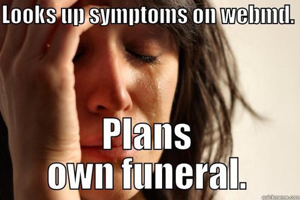 Chances are, every symptom you put into WebMD will always tell you either you have cancer, you're pregnant, or dying; don't get too caught up on what it tells you, but listen to your mom when she tells you that you are just overreacting.