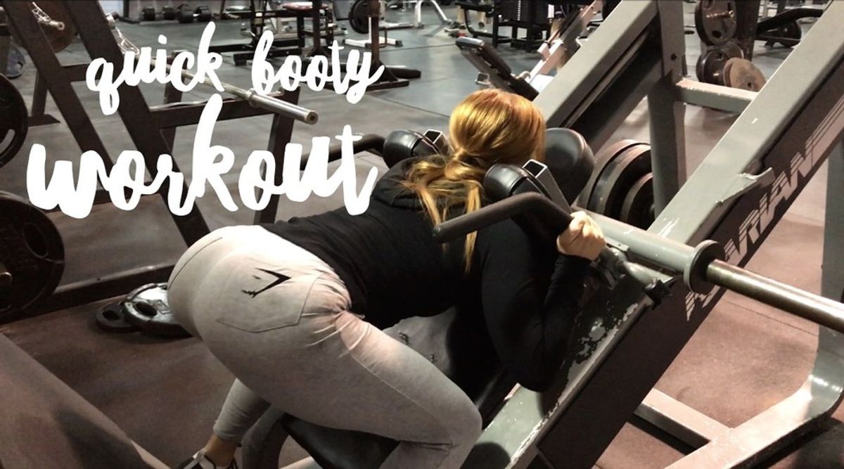 Reverse Hack Squat - 4 sets / 10-12 reps ( All gyms have different variations of this machine so check the picture and description on the machine and if your gym doesn't have one substitute in another exercise using glutes or hamstrings!)