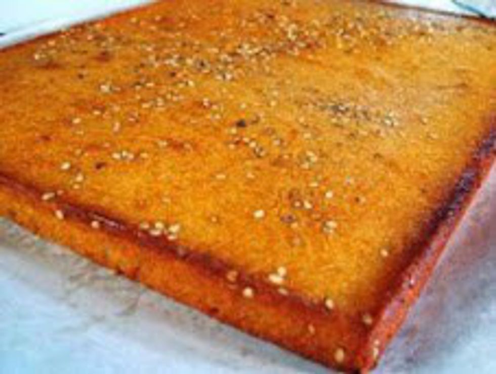 Ground yucca formed to a ball, then fried, topped with honey.