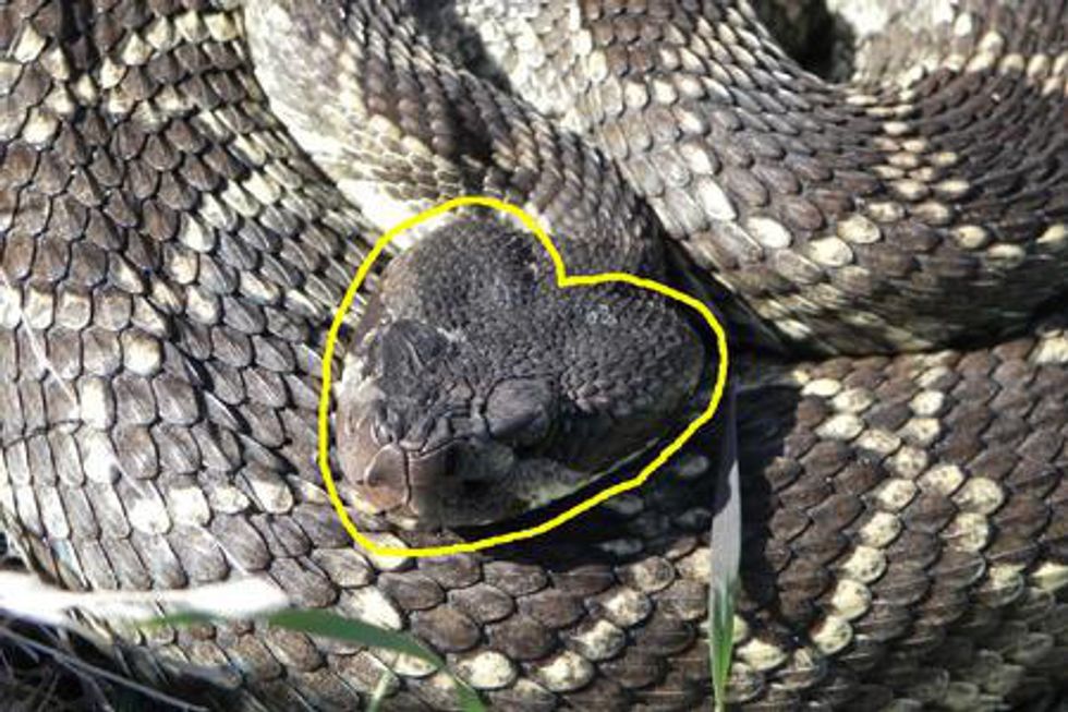 First and foremost, if you run into a snake, the chances are that it isn't venomous, and so you should probably just leave it alone. If you need a little help, one of the easiest things you can look at is the head of the snake. If it is in a heart, or diamond shape, then it belongs in the venomous viper family with other snakes, such as the copperhead and rattlesnake.