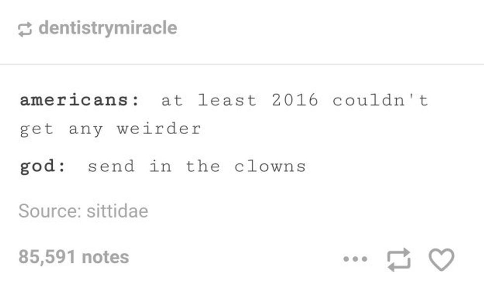 Needless to say, 2016 is not shaping up to be the year we all hoped it would be: with Pokémon Go and Donald Trump, you would’ve thought we had suffered enough. But, nope. Just as things couldn’t get any worse, they brought in the f*cking clowns.