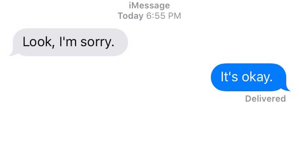 How many times have you sent a text like that? How many times has this been your response to someone who apologizes for something? Probably more times than you realize. It’s natural and it’s normal. People do this all the time- and sometimes it makes complete sense.