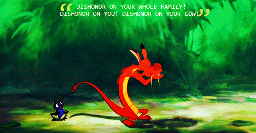 "Dishonor on you! Dishonor on your cow!" - Mushu from "Mulan"