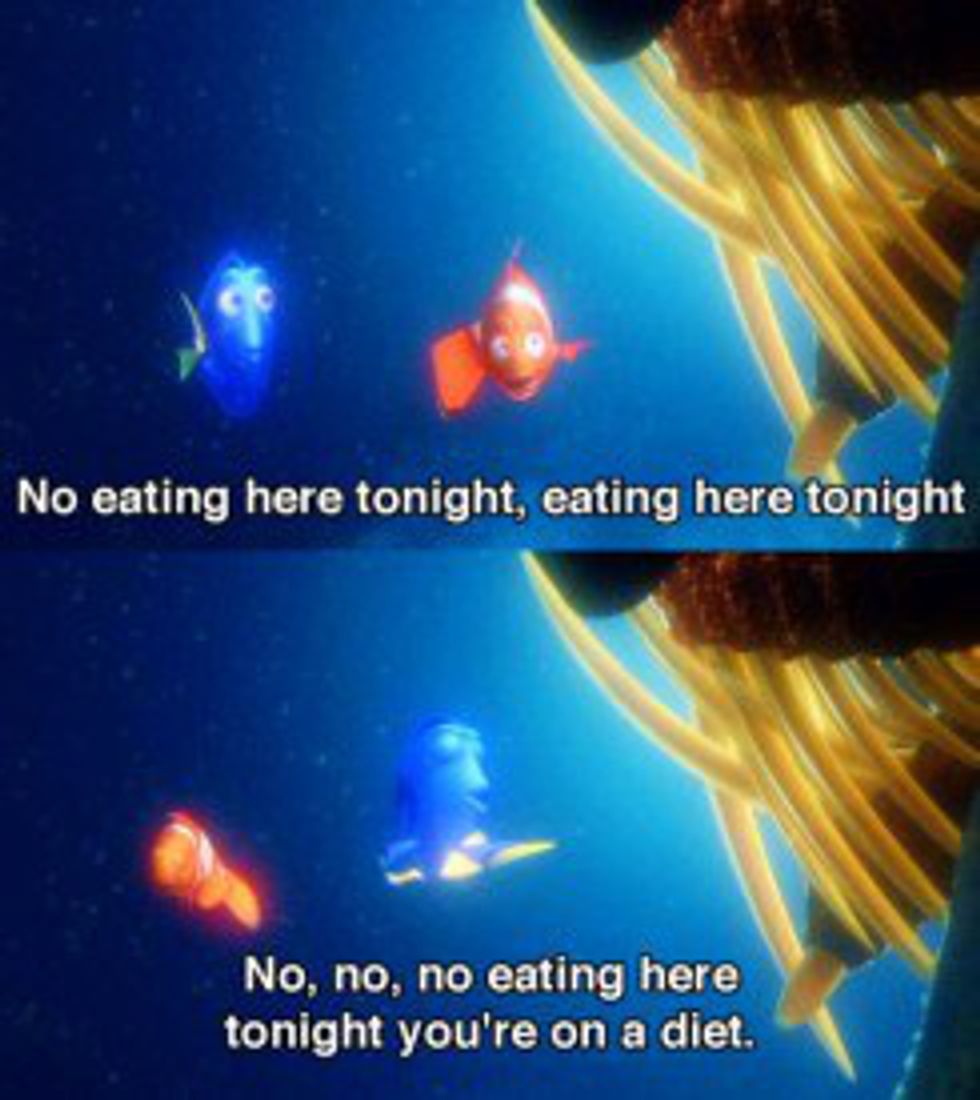 "No, no, no eating here tonight you're on a diet." - Dory from "Finding Nemo"