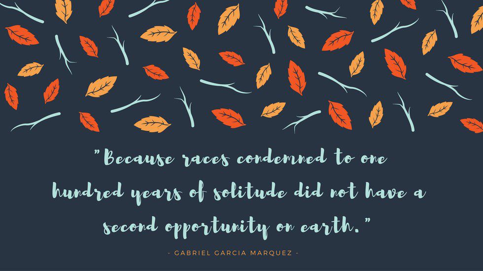 20. "Because races condemned to one hundred years of solitude did not have a second opportunity on earth." –Gabriel Garcia Marquez / 100 Years of Solitude