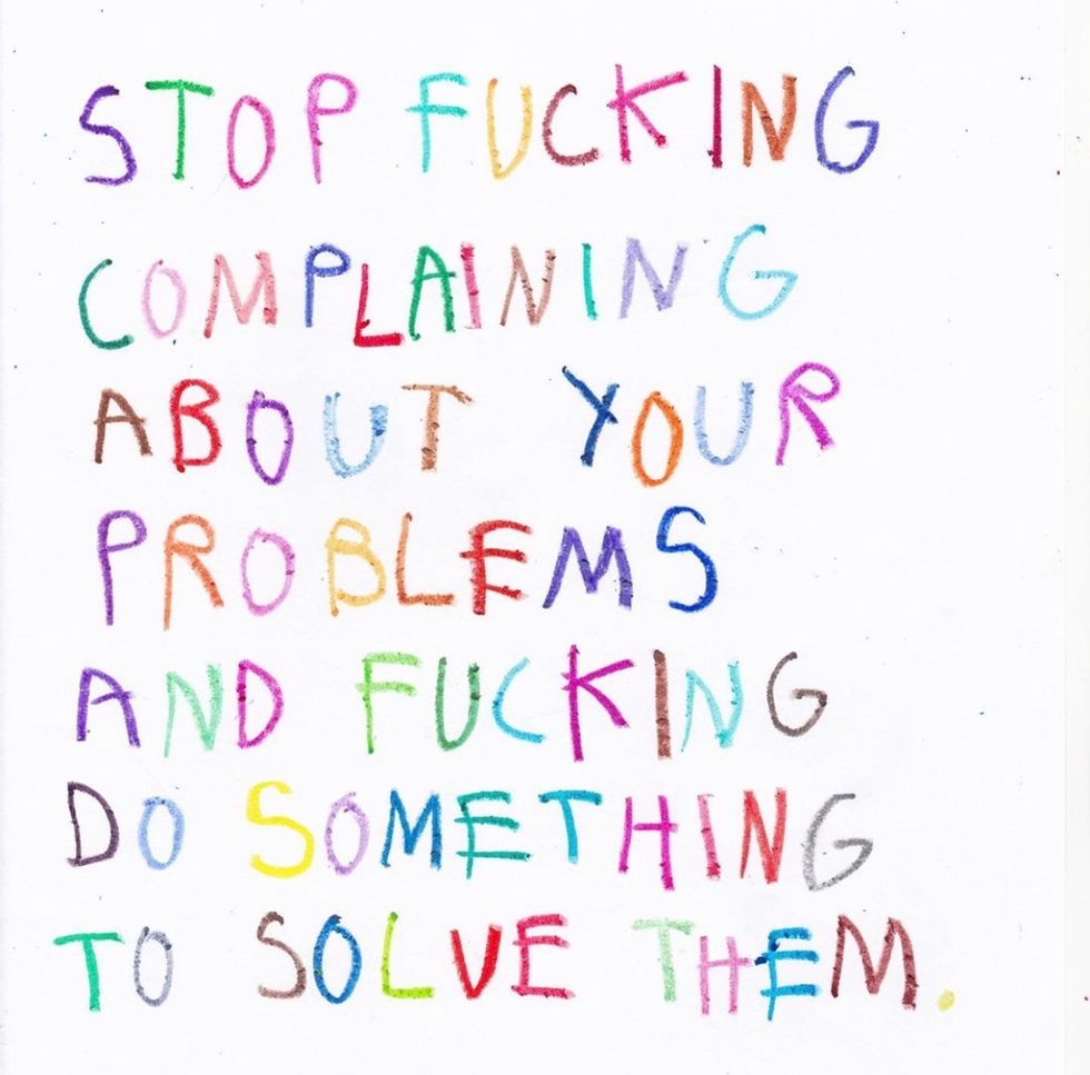 Stop *BLEEP*ing complaining about your problems and *BLEEP*ing do something to solve them.