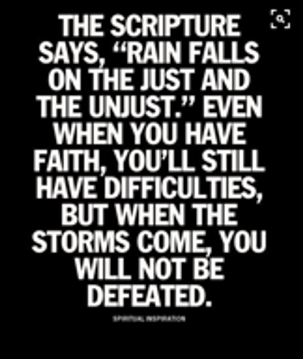 3. The scripture says, "Rain falls on the just and the unjust." Even when you have faith, you'll still have difficulties, but when the storms come, you will not be defeated.