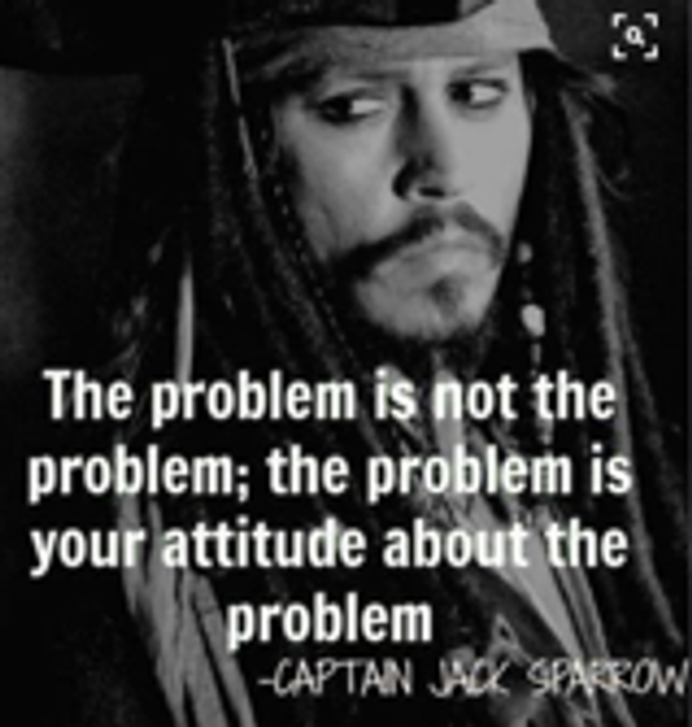 Nothing is better than a little Captain Jack Sparrow! Even though this is from a movie, I think that the meaning holds true. How often is our attitude about something that isn't the actual problem? Often times I think people have the tendency to overreact to situations. In those instances, it reminds me of another saying my dad always tells me. He says, “Your day goes as well as you want it to.”