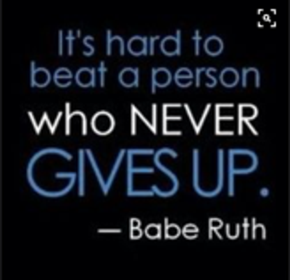 Having been in sports throughout my lifetime this statement is used a lot. However, it is for good reason. It is so hard to beat the person who just never stops. You could have all the talent in the world, but if you give up easily it means nothing. This applies to more than just sports though. It applies to life. Nothing can beat you if you never give up trying.